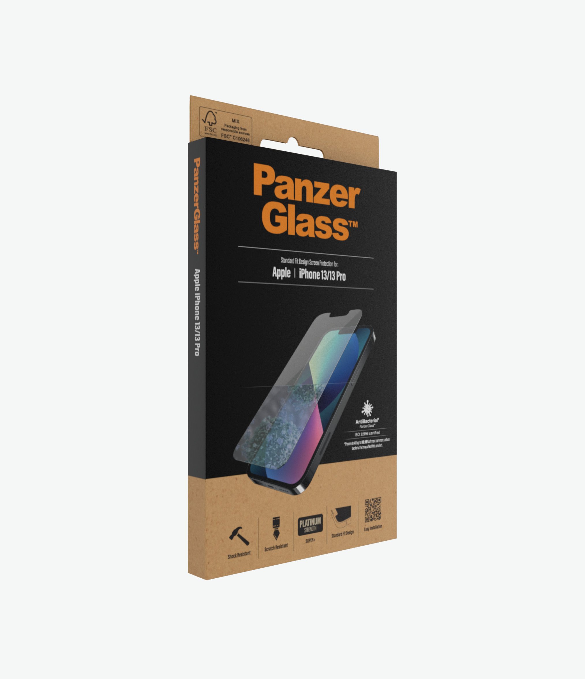 يتمتع واقي الشاشة PanzerGlass ™ لجهاز iPhone 13 و 13 Pro المزود بطلاء مضاد للجراثيم بنفس ميزات PanzerGlass ™ الأصلي وسيحمي شاشتك من الخدوش والصدمات. يتم تقليل حجم الزجاج Standard Fit ويتميز بغراء سيليكون كامل يمنح حساسية مثالية للمس مع الاستمرار في توفير قوة PanzerGlass ™ الفائقة.
